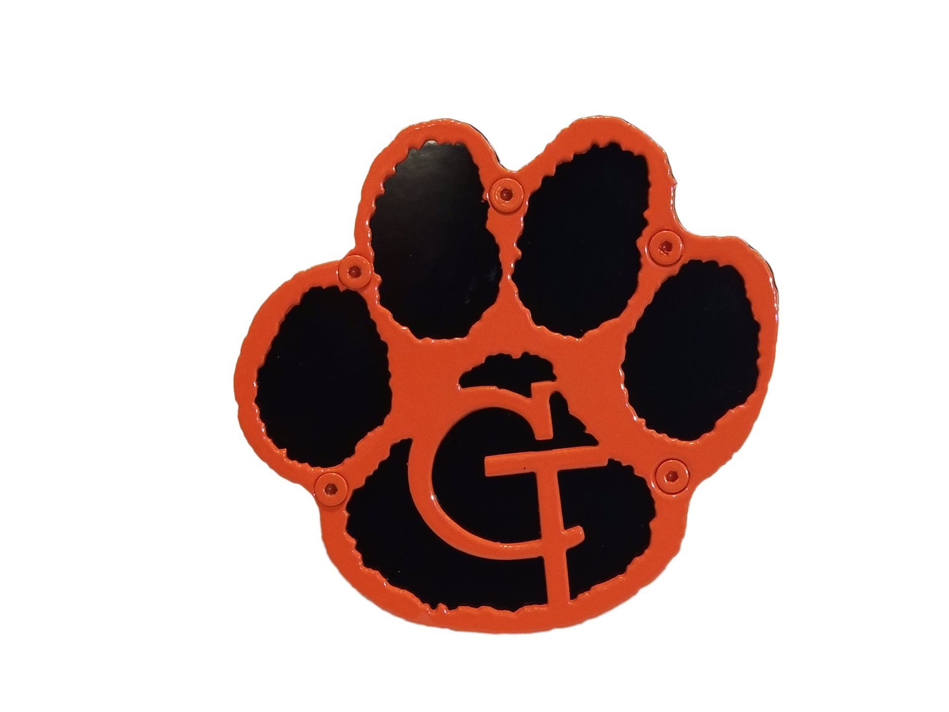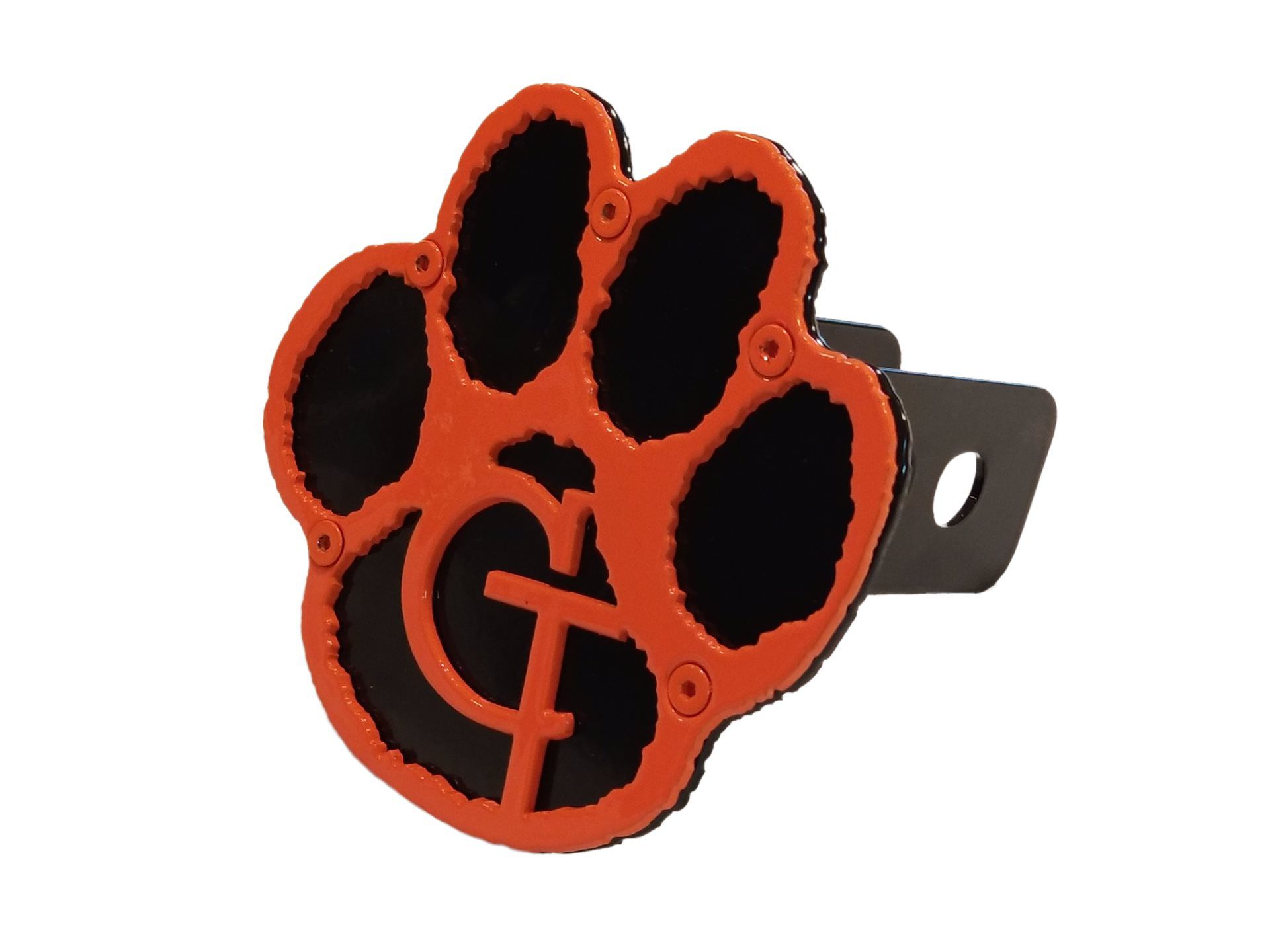 This Centralia Tigers custom hitch cover is fabricated from 11 gauge steel, certified welded and then powder coated with multiple coats to give it a durable, but yet great look.