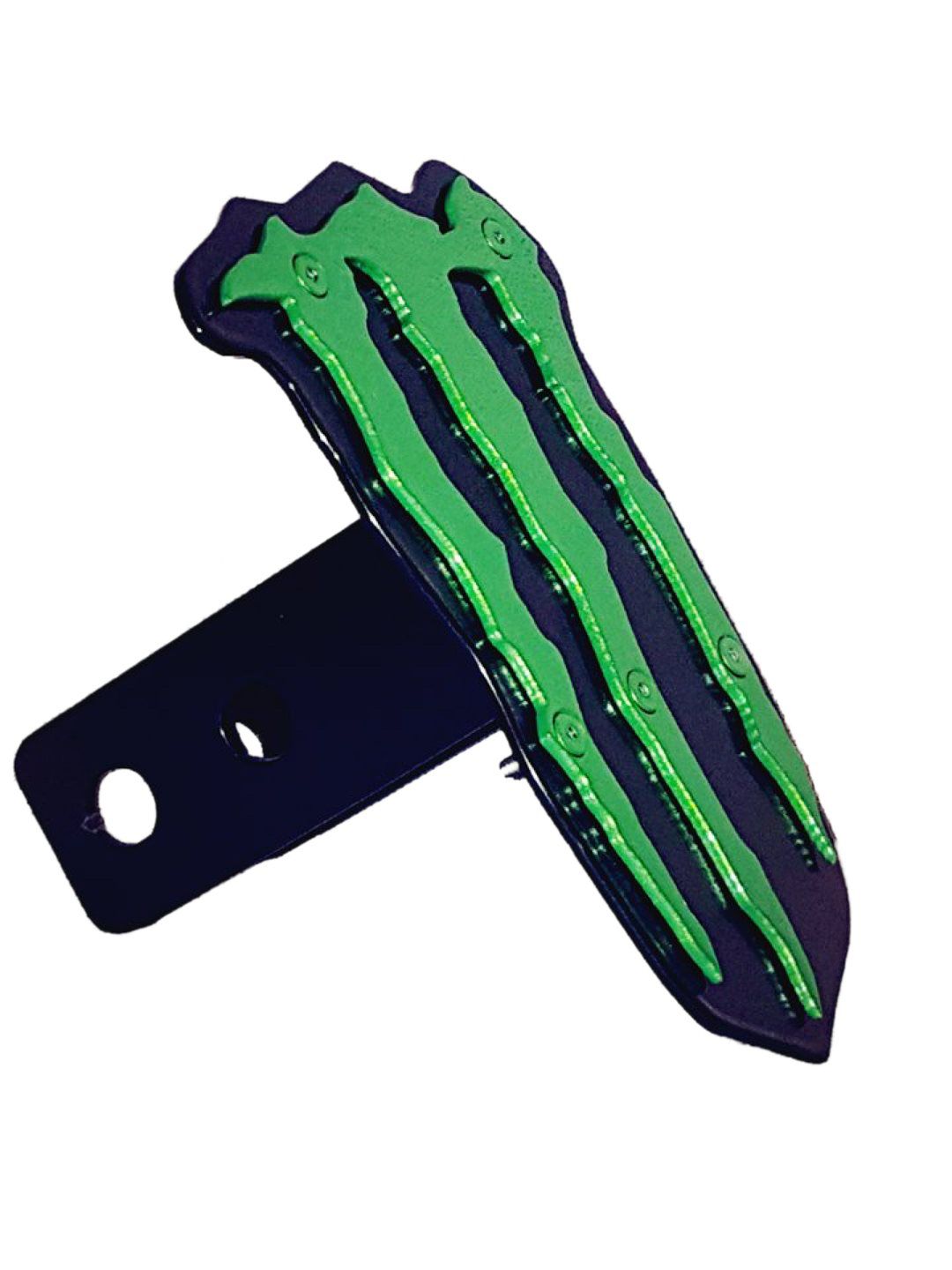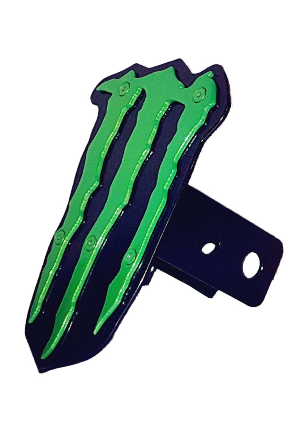 This Monster Logo custom hitch cover is fabricated from 11 gauge steel, certified welded and then powder coated with multiple coats to give it a durable, but yet great look.