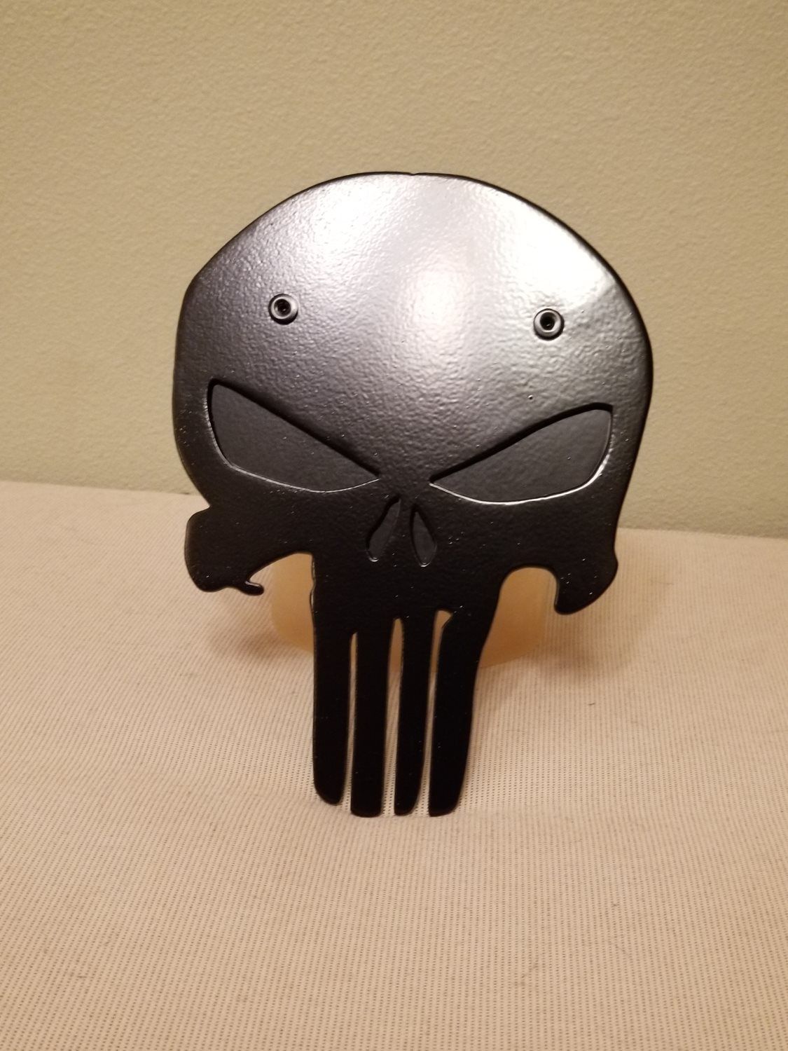 This Punisher custom hitch cover is fabricated from 11 gauge steel, certified welded and then powder coated with multiple coats to give it a durable, but yet great look.