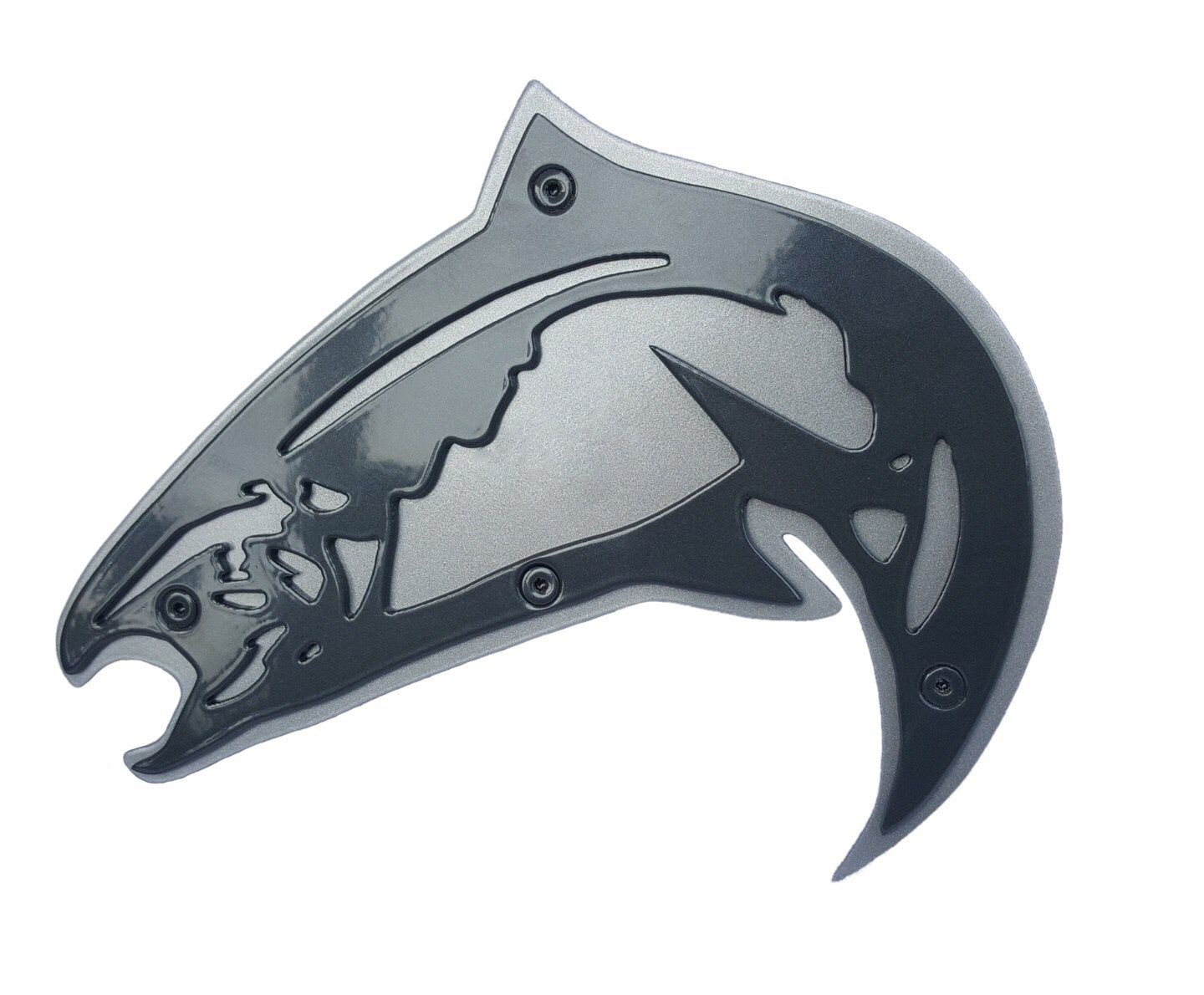 This Salmon Hitch Cover is fabricated from 11 gauge steel, welded and powder coated with multiple coats to give it a great and durable look to it.