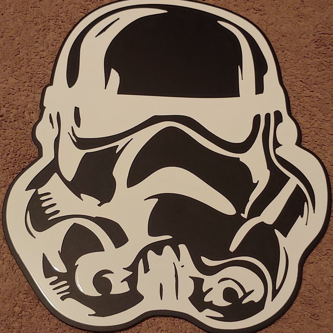 This Star Wars Storm Trooper Wall Hanging is a two layer piece that stands at approximately 23"x22". It is extremely well designed to look great on one's wall.