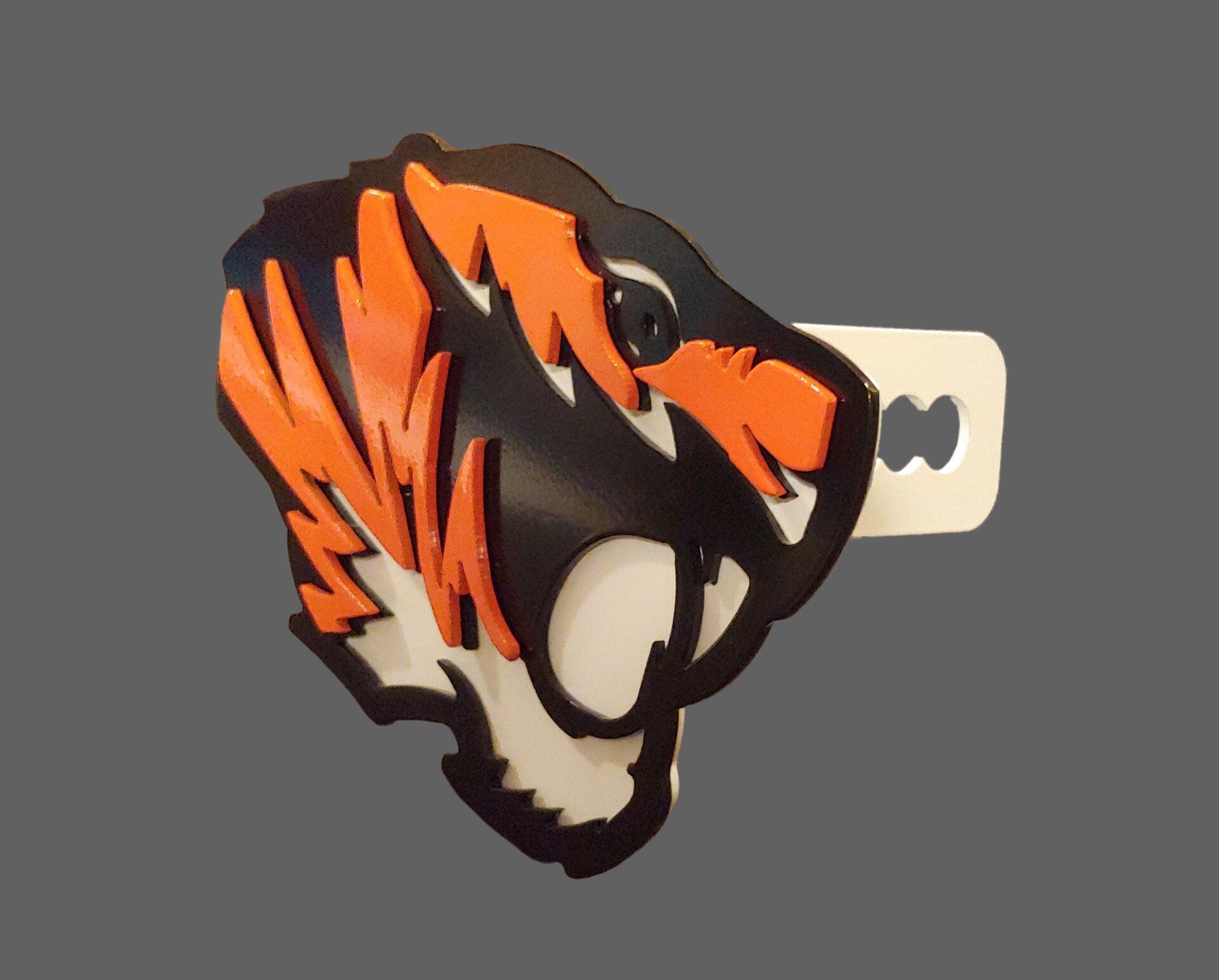 Custom designed to look great, be extremely durable and impress those who see it. This hitch cover is powder coated to withstand the elements of mother nature. Each hitch cover is secured with stainless steel screws that are powder coated to match the hitch cover. This allows it to blend in and look seamless. If purchased, you will receive a hitch cover that is fabricated to fit within a 2" hitch receiver. It will fit inside of a 2.5" Receiver, if that receiver contains a sleeve that they are normally sold with. If you are in need of a 1.25" hitch cover, please note that need in the comments section while checking out. We will fabricate one to your needs. If you have a unique idea or question about us designing one specifically for you, we would love to help and work with you.
